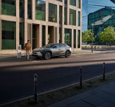* Energiförbrukning och CO2-utsläpp vid blandad körning enligt WLTP: 13,9-15,9 kWh/100 km och 0 g/km. Räckvidd på el 444-569 km enligt WLTP. Verklig räckvidd kan avvika beroende på bl a utrustning, körsätt och körförhållanden. Finansiering via Toyota Financial Services: exempel med Easy Privatleasing, månadskostnad inkl. service, baserad på fast ränta, 36 månader, 4 500 mil, och garanterat restvärde. Övermil (12.5 kr/mil) och skador utöver normalt slitage debiteras vid återlämning av bilen. Uppläggnings- och aviavgift samt skatt och avgifter från Transportstyrelsen tillkommer. Easy Privatleasing-erbjudandet gäller t.o.m. 2026-01-07..